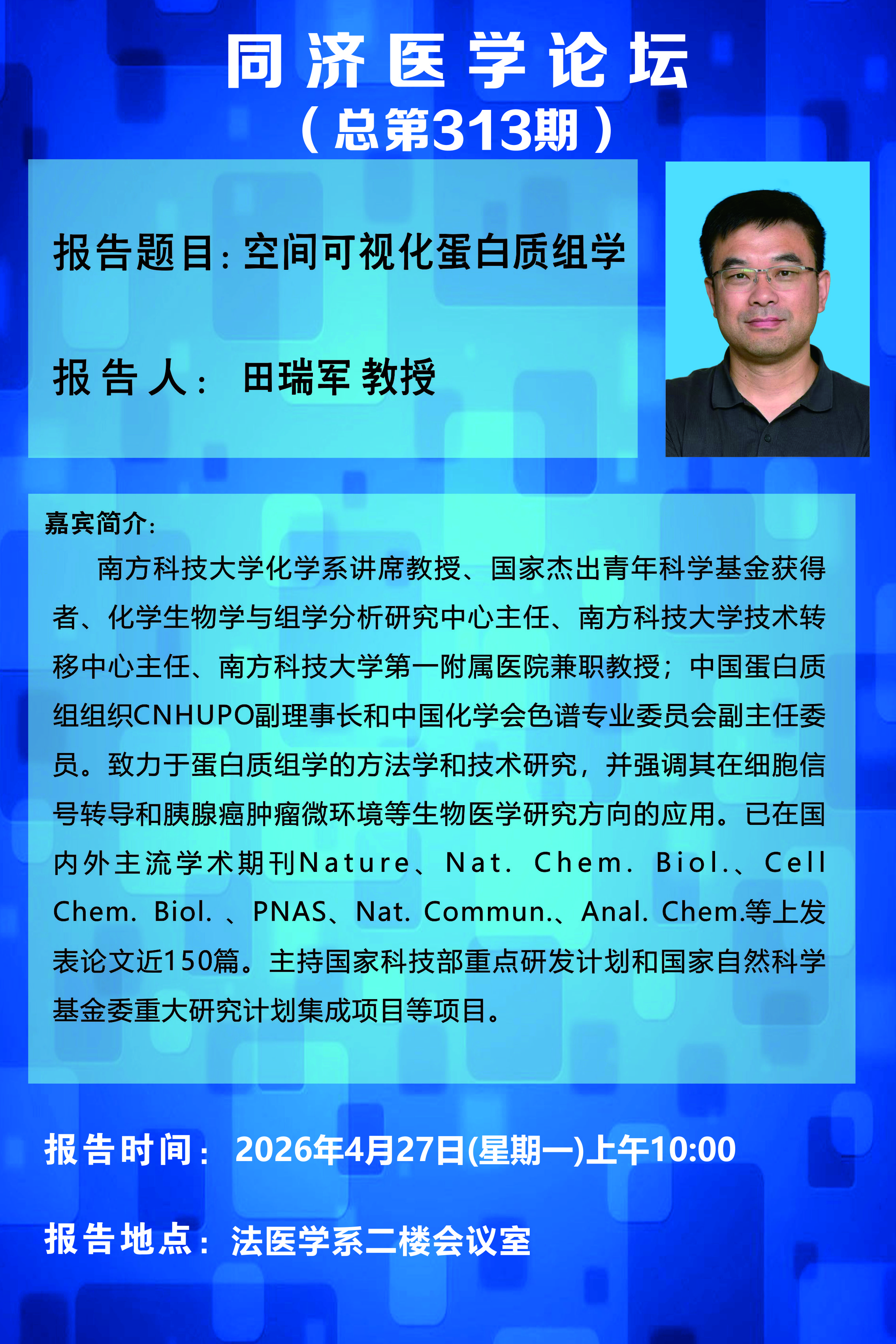 报告题目 空间可视化蛋白质组学 报告人 田瑞军 南方科技大学教授