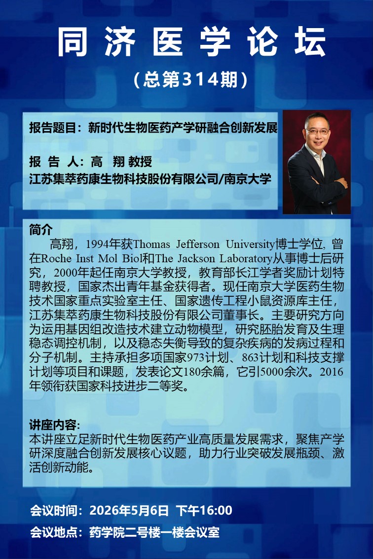 报告题目 新时代生物医药产学研融合创新发展 报告人 高翔 江苏集萃药康生物科技股份有限公司/南京大学教授