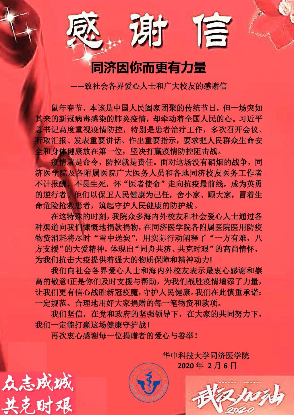 致社会各界爱心人士和广大校友的感谢信