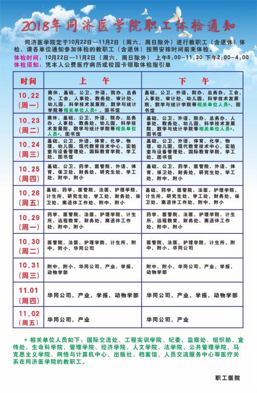 2018年同济医学院职工体检通知