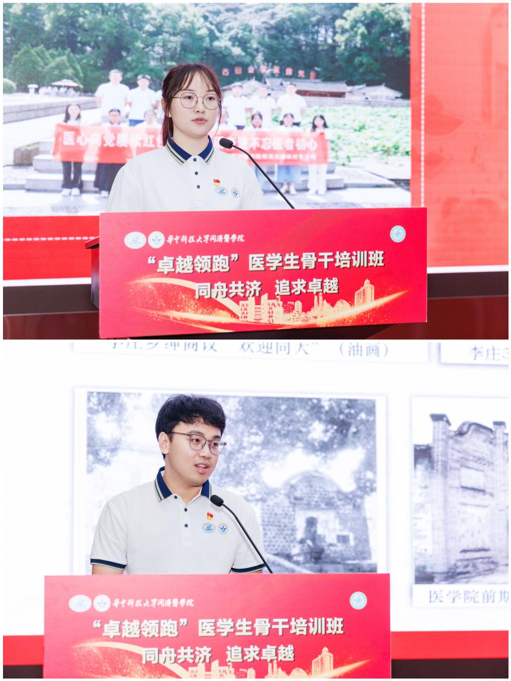 据悉,首届“卓越领跑”医学生骨干培训班实现了本研一体化培养,学员跨年级、跨专业编班,涵盖了本科生骨干、研究生党员骨干、各类实验班学生以及裘法祖奖学金获得者等。培训班以党旗领航为统领,开设了“勤学”“修德”“明辨”“笃实”等共计32学时的系列课程,邀请了“人民英雄”张定宇等进行专题授课,内容涵盖了医学科研论文入门、创新创业教育、急救训练以及美育提升等方面,贴近医学生的成长与发展。培训班开班期间还组织全体学员分赴武汉革命纪念馆、武汉博物馆、中山舰博物馆以及武汉抗战第一村姚家山实地走访,深度融合理论学习与实践研学,为医学生打造定制化的卓越成长平台。