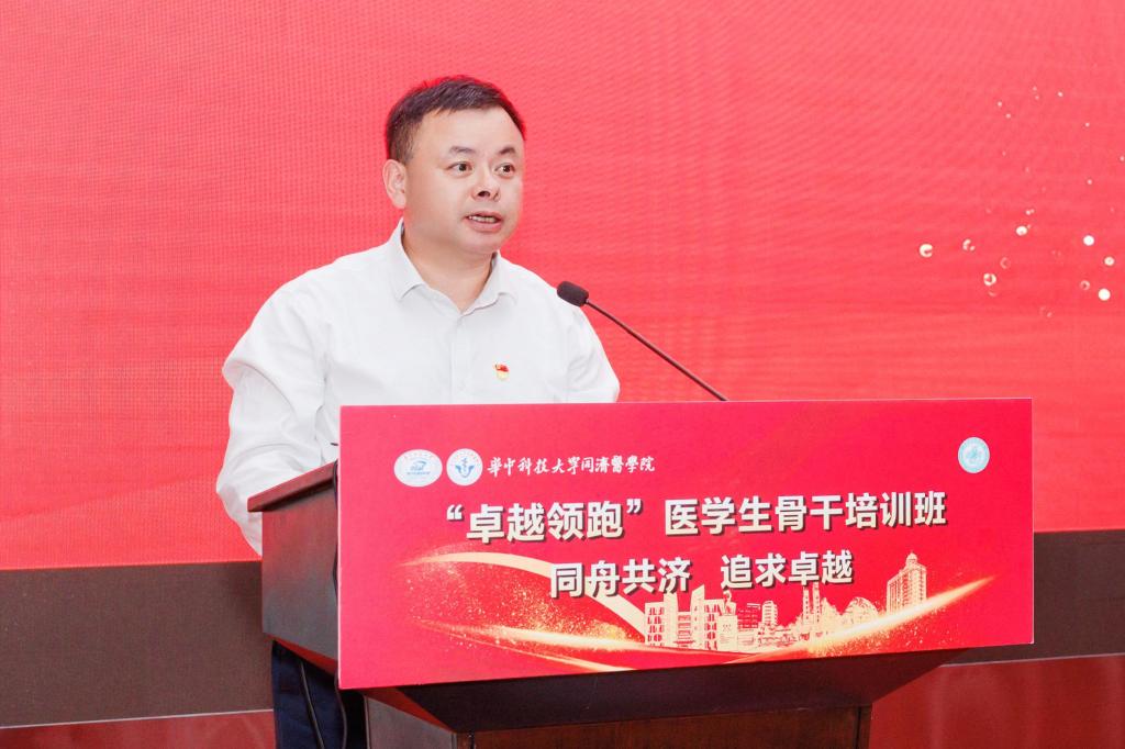 张勇慧副校长为同学们讲授了思政课。他指出,举办“卓越领跑”医学生骨干培训班是深入学习贯彻党的二十大和二十届三中全会精神,培养德才兼备的医学生骨干,造就医学拔尖创新人才的有力举措。他表示,从“著名医科”到“强势医科”的目标重塑,对全体医科师生提出了更高的期望与要求。作为华科大同济学子,要勇担“健康所系,性命相托”的使命责任,立报国强国大志向,做挺膺担当奋斗者,努力成长为堪当民族复兴重任的卓越医学科学家。他勉励同学们要胸怀家国,锚定正确人生航向,把个人小我融入国家大我,在为国尽责、为民服务中实现个人价值;要厚德笃行,坚守医者大爱仁心,用心怀大爱的热忱付出回应人民的信任和生命的重托;要博学求真,勇攀医学科技高峰,敢闯“无人区”,勇当“探索者”;要精诚团结,积极发挥榜样引领作用,做好领头雁和排头兵,带领身边同学们一起在青春的赛道上跑出加速度,真正实现“卓越领跑”。
