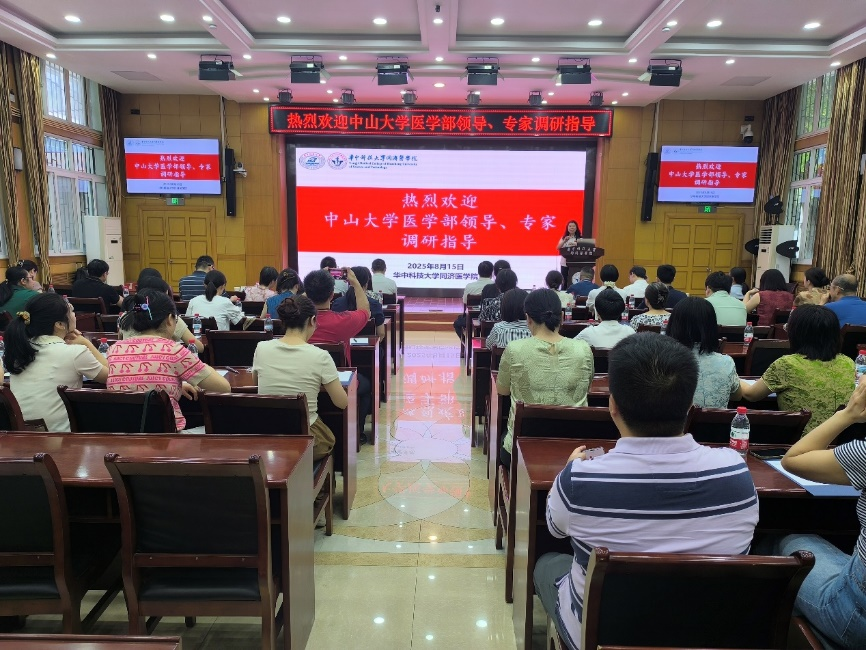 8月15日上午,中山大学医学教育处副处长田国宝、王淑珍一行46人到我校参观调研,同济医学院副院长舒晓刚参加交流会。