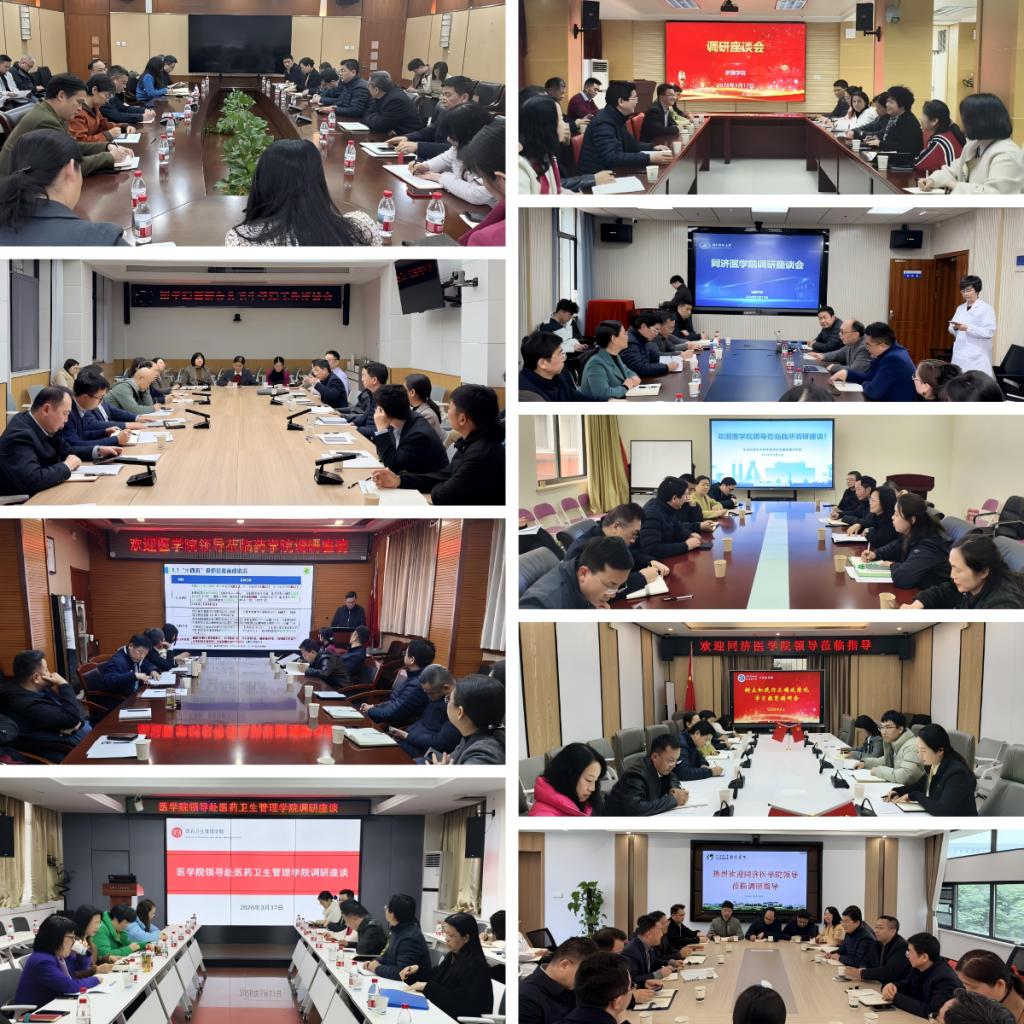 为推进树立和践行正确政绩观学习教育走深走实,切实解决师生急难愁盼问题,更好开展医科“十五五”规划编制工作,根据医学院统一部署,3月6日至24日,院领导秦选斌、朱文珍带领医学院各职能部门和后勤保障中心负责人,深入基础医学院、公共卫生学院、药学院、医药卫生管理学院、护理学院、法医学系、生殖健康研究所、口腔医学院和附属梨园医院等9个单位开展专题调研。