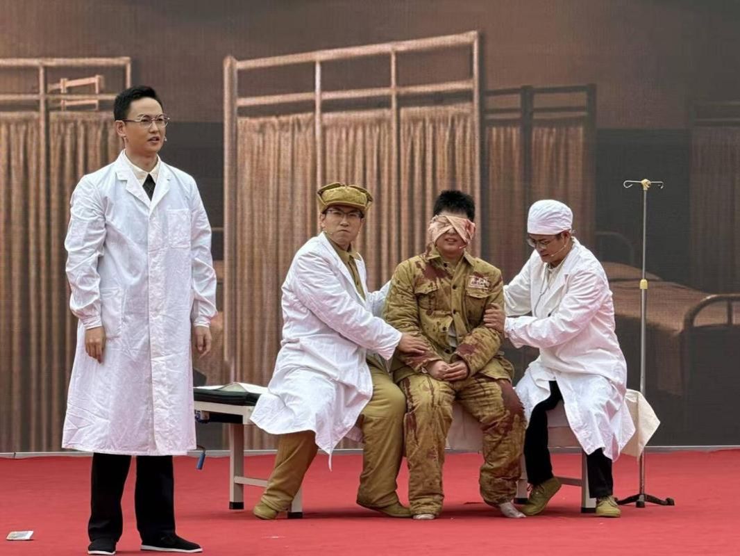 演出现场,话剧生动再现了抗美援朝期间,我国现代外科学奠基人裘法祖院士奔赴前线救治伤员、培训战地医生的感人场景。演员们精湛的演技将观众带回了那段烽火连天的峥嵘岁月,深刻展现了裘法祖院士心有大我、至诚报国的理想信念,以及志愿军战士舍生忘死、英勇无畏的英雄气概。台上深情演绎,台下掌声雷动,不少观众眼含热泪、深受触动。