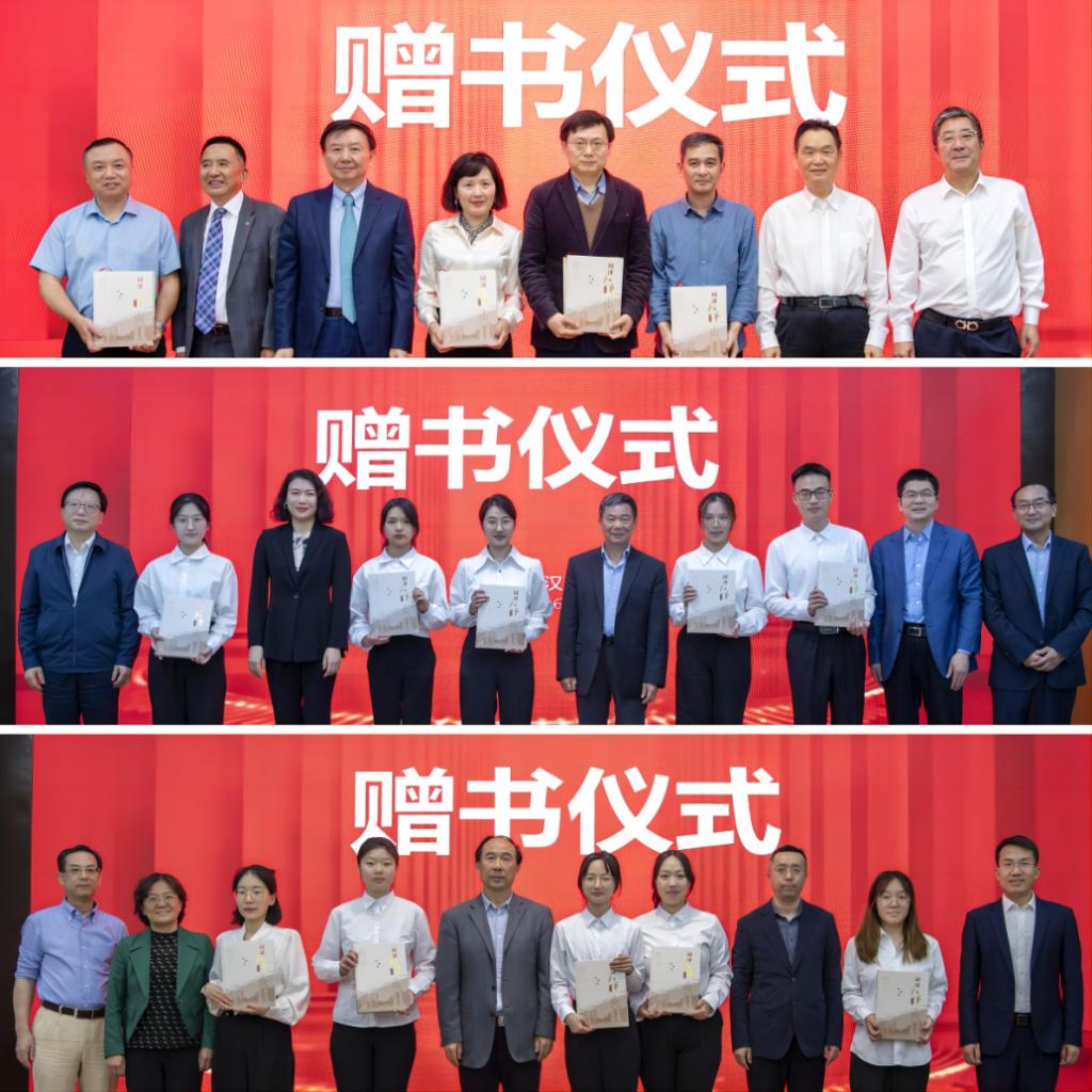 随后,与会领导向学校校史馆、医学院院史馆、附属协和医院及同济医院院史馆代表和在校学生代表捐赠《同济叙事》并合影留念。