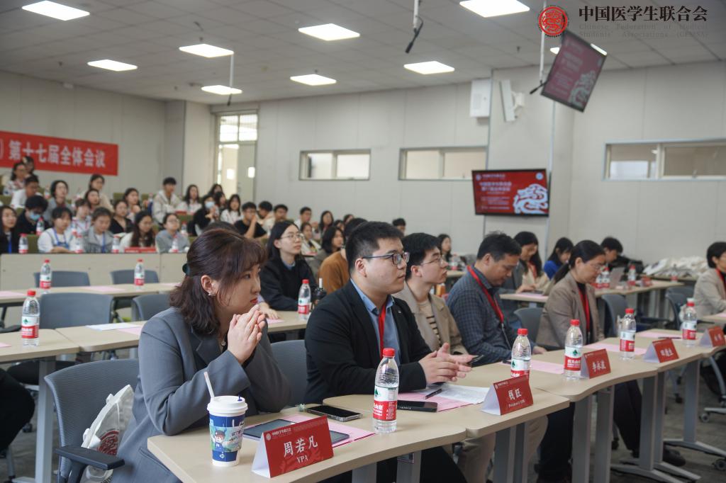 2024年3月23日至24日,中国医学生联合会第十七届全体会议在我校同济医学院成功举行。同济医学院党委副书记、纪委书记陈秋生,医学教务处处长向明,基础医学院党委副书记、副院长郑芳,党委副书记田德生,医科团工委办公室主任张卓,基础医学院团委书记李永波,八年制医学生协会指导老师渠冰出席会议开幕式。来自北京协和医学院、复旦大学上海医学院、上海交通大学医学院等全国16个重点医学院校的82名学生代表,聚焦探讨医学领域的新趋势新挑战和医学生在健康中国实践中的担当与作为。