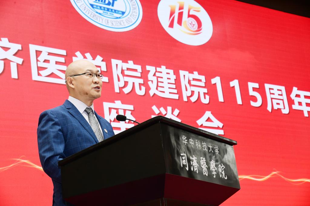 李元元代表学校向医学院全体师生员工、离退休老领导、老同志和广大校友致以热烈祝贺,向长期以来关心学校发展、支持同济医学院建设的领导和朋友表示衷心感谢,对同济医学院在人才培养、科学研究、学科建设、医疗服务等各项工作取得的突出成绩表示肯定。他指出,115年来,同济医学院始终把立德树人作为根本使命,为我国培养了大批卓越优秀医学人才;始终坚守“要做万人之医”理念,持续推动医学科技创新,在多个领域取得重要成就;始终坚持“生命至上”原则,暖医、匠医、仁医不断涌现。