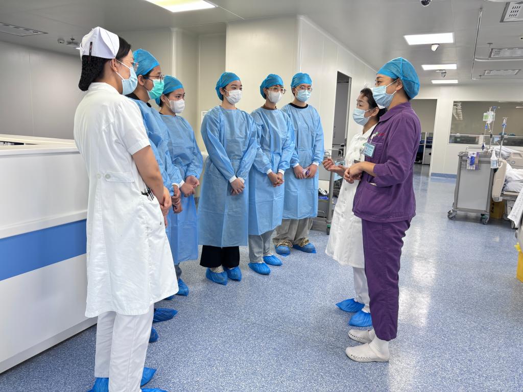 7月7日至8日上午,学生代表团走进华中科技大学同济医学院附属同济医院参观交流,先后参观了神经外科、甲乳外科心内科、内分泌科、呼吸重症监护室等,围绕电生理适宜技术应用、淋巴水肿综合消肿治疗、呼吸重症规范化管理等内容展开观摩学习。