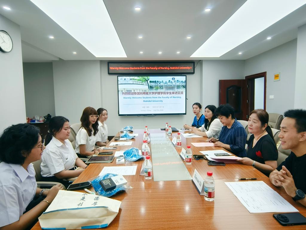 王芙蓉院长首先对泰国学生的到访表示热烈欢迎。她回顾道,我校与玛希隆大学合作渊源深厚:2023年两校正式建立核心合作伙伴关系;同年12月,护理学院与玛希隆大学护理学院签署合作备忘录及学生交流协议,并于2024年暑期成功启动首批学生交换项目。今年5月,通过两校高层会谈进一步深化了战略合作。她强调,玛希隆大学护理学院是我校护理学院在泰国乃至东南亚地区重要的国际合作伙伴。此次两院学生再度互访为双方合作谱写了崭新篇章。她期待通过本次交流,两国学子深入探讨中泰护理体系特色,共同提升专业素养和实践能力。