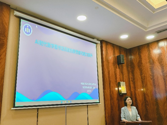 邹立君主持活动开幕式,陈锐在开幕式上致辞。陈锐对大力支持本次活动的专家学者和继续教育专业组的努力付出表示衷心感谢,对积极参加本次培训的同仁表示热烈的欢迎。她指出,随着人工智能技术的迅猛发展,人类正步入AI时代。AI技术的应用,极大提高了图书馆服务的效率和用户的体验。AI时代,医学图书馆员要在多个方面进行能力的提升,以适应技术发展和图书馆服务的转型需求。为更好落实医学图书馆数字转型、数字建设与服务,持续提升图书馆员的业务水平和服务能力,医图学会继续教育专业组精心筹划组织了此次培训。希望通过此次活动,进一步加强人工智能时代医学图书馆队伍建设。