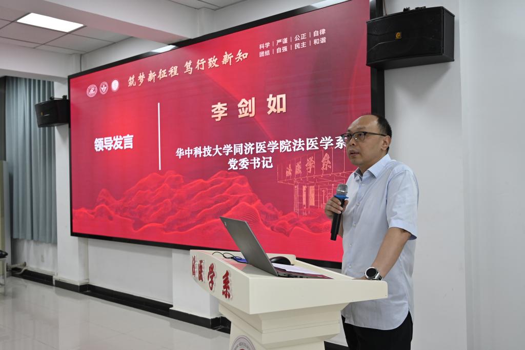李剑如书记在欢迎致辞中指出,今年恰逢中国人民抗日战争胜利八十周年,同学们要以史为鉴,坚定理想信念,厚植家国情怀。他勉励全体新生,要精研法医专业知识与实践技能,更要锤炼高尚品德与过硬本领,将个人理想融入“医学报国”伟业,争做“有理想、敢担当、能吃苦、肯奋斗”的华科大法医人。