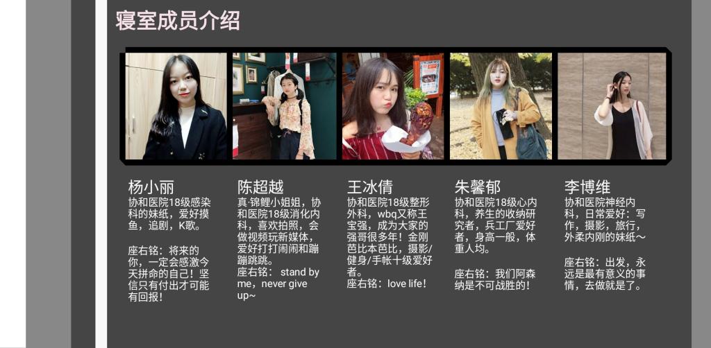 干净整洁的寝室环境,极富创意的主题设计,彼此包容、互相支持的和谐人际关系,携手共进、专心学业的积极精神风貌,这些就是此次“寝室文化节”参赛寝室的共同写照。1218日晚的总结暨表彰大会上,获奖寝室代表对以上寝室文化逐一进行了展示。校研究生院副院长、医学研究生部部长董卫国、副部长李强、各院系所研究生辅导员参加大会。