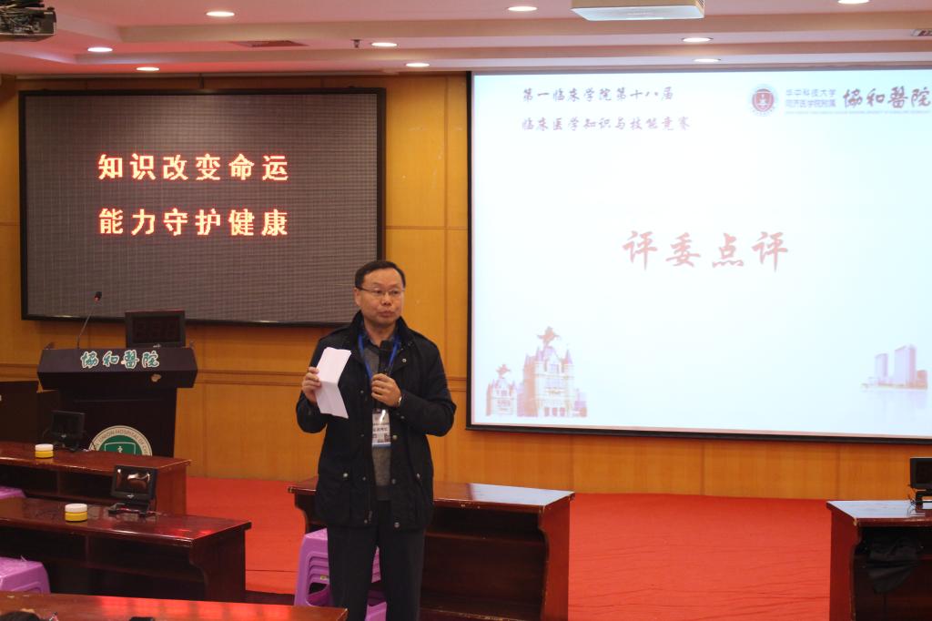 1117日,第一临床学院第十八届临床医学知识与技能竞赛复决赛在协和医院教学楼顺利举行。第一临床学院副院长季湘年、教学办公室、学生办公室相关老师以及教师班主任、各专业评委老师到场。连续7年获评我最喜爱的老师称号的呼吸内科教授陶晓南应邀担任总裁判长。