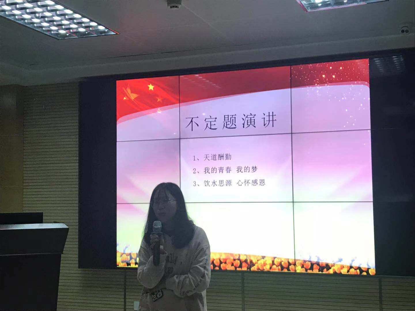 经过近一个小时的激烈角逐,15级英护班杨文婷以其自信流畅的演讲脱颖而出进入下一轮比赛;16级英护班蔡悦,结合自身经历,发表了自己关于“敢于有梦,勇于追梦”的理解,为自己寻找到了精神寄托和为之努力的方向,深刻阐释了水滴石穿的坚持与毅力,也拿到了进入下一轮的资格;17级英护班汪唯,凭借流畅的幻灯片,从时事热点出发,并结合自己在成都参与志愿活动的经验和阅读《习近平的七年知青岁月》的心得体会,向大家分享了自己的见解,并因深刻而富有内涵,从而顺利进入下一轮;16本护班王师、17英护班罗紫怡、15英护班胡玉兰也都凭借精彩的表现进入下一个环节的竞赛中。