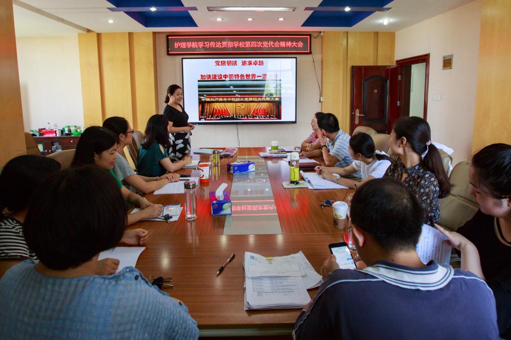 7月10日上午,护理学院召开教职工大会,专题传达学校第四次党代会精神。学院党总支书记徐晖为全院教职工作报告。徐晖书记首先就党代会的基本情况、党代会会议议程、会议成果几个方面进行了简单的介绍,接下来为全院教职工系统解读了党代会报告《党旗领航 追求卓越 加快建设中国特色世界一流大学》,并做了学习贯彻学校第四次党代会精神的动员。