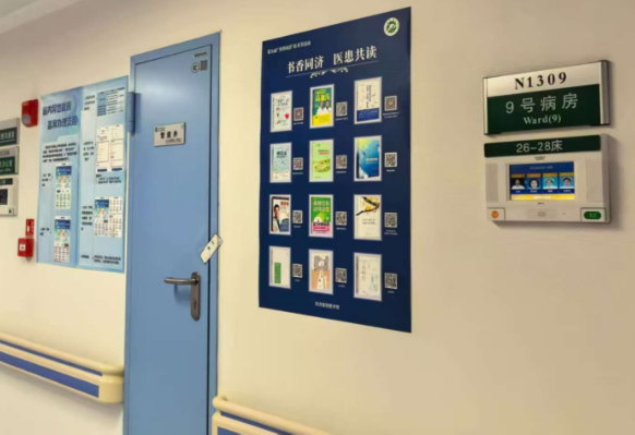 图书馆精选70余本网络高评分医学科普著作,以及部分2025年度《人民日报》推荐书单,以电子屏扫码阅读方式,投放门诊候诊区域;并以海报形式印刷张贴到消化内科、内分泌内科、肿瘤科、神经外科等临床病房。